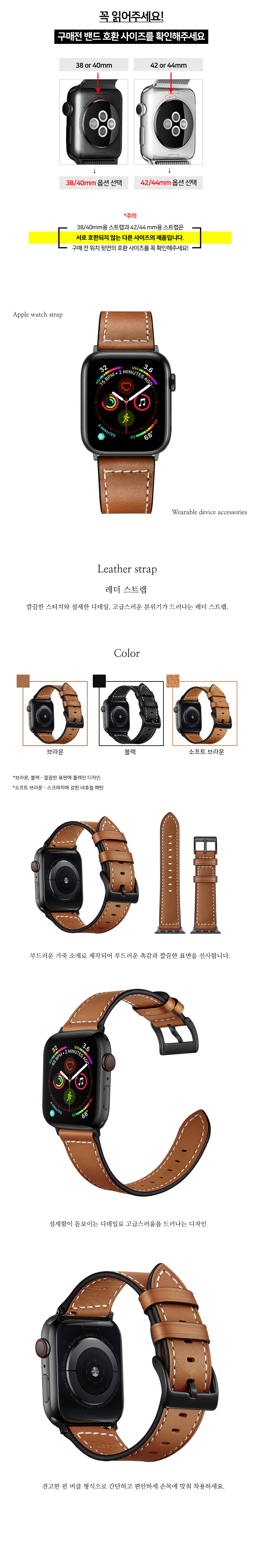 애플워치 스트랩 클래식 가죽 레더 밴드
