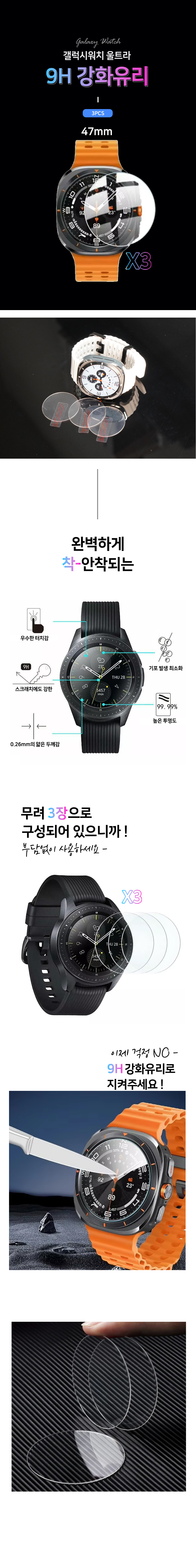 갤럭시워치 울트라 47mm 강화유리 액정 보호 필름 3장
